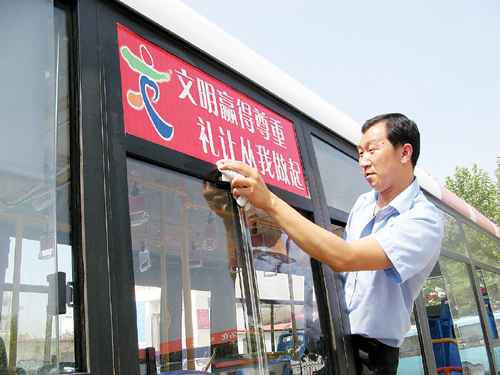 为进一步擦亮公交窗口形象,给创建文明城市加分,青岛公交集团莱西巴士公司在更新公交车、更换站牌站杆、安装GPS卫星定位语音报站等硬件的同时,在软件上下功夫,统一培训了驾乘人员文明服务规范,在乘务员中开展了英语、哑语比武活动,还统一印制了“文明赢得尊重,礼让促进和谐”等创城宣传口号,提出了驾乘人员工作规范,不定期印发《信息与交流》交流文件,聚集全力迎接创城,展示莱西公交新形象。 (崔克臣)