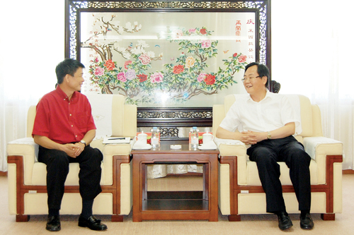 王久军对潘勇一行来我市推进项目合作表示欢迎,并向客人介绍了我市的自然资源、区位优势和基础设施条件等情况。他说,随着老龄化日益加剧,高端的养老养生项目有着广阔的市场空间,集团计划在我市建设养老项目,不仅丰富了我市同类产品的开发,更将对完善城市功能、改善城市形象、提高城市品位起到积极的作用。