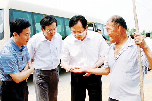 市委书记王久军6月21日深入田间地头、河道水库,实地察看我市“三夏”生产和防汛工作开展情况时强调,要全力以赴确保夏粮丰收和安全度汛。