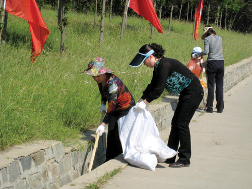 近日,市妇联全体机关干部来到梅花山责任区,对责任区的环境卫生做进一步清理。大家冒着酷暑,对排水沟渠做了重点清理,清理出杂草、砂石等垃圾12袋,保证了沟渠外观整洁、排水通畅。为维持前期工作成果,工作人员又捡拾了责任区内的纸屑、塑料袋、饮料瓶等垃圾,共清理出垃圾10多袋(塑料袋),使责任区始终保持整洁美观。