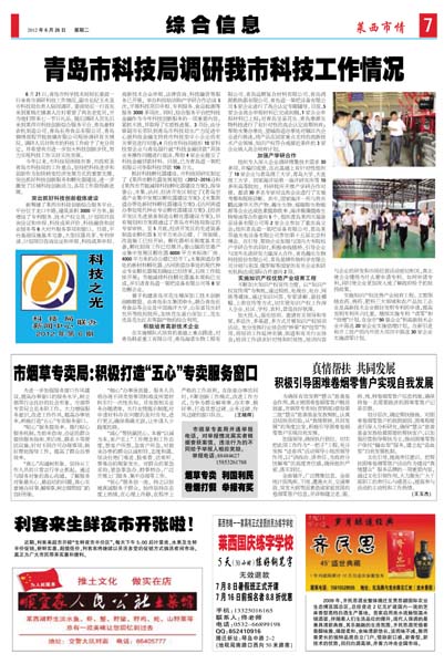 6月25日,青岛市政协副主席杨宏钧带领落实省和青岛市政协工作会议精神情况第三检查组来我市检查贯彻...
