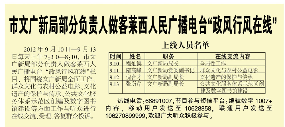 市文广新局部分负责人做客莱西人民广播电台“政风行风在线”