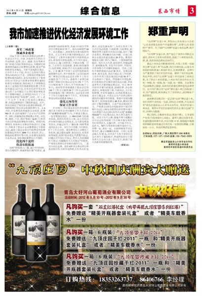 今年7月,青岛市优化经济发展环境工作大会召开后,我市高度重视,迅速行动,精心组织,形成了市级领导...