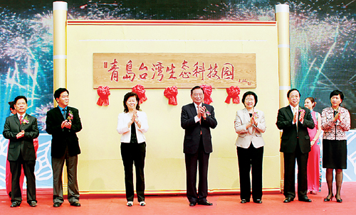 9月23日上午,青岛台湾生态科技园在我市正式揭牌。台湾海峡交流基金会董事长江丙坤,海峡两岸关系协会副秘书长张胜林,山东省台湾事务办公室主任张雪燕,青岛市政府副市长刘明君,青岛市委副秘书长、青岛市台湾事务办公室主任田云南,我市市委书记、市人大常委会主任刘圣珍,市委副书记、市长孙利国共同为生态科技园揭牌。现场还有6个内外资项目集中签约。