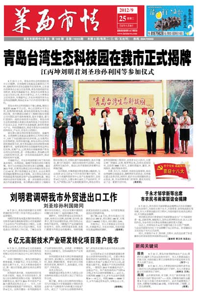 9月23日上午,青岛台湾生态科技园在我市正式揭牌。台湾海峡交流基金会董事长江...