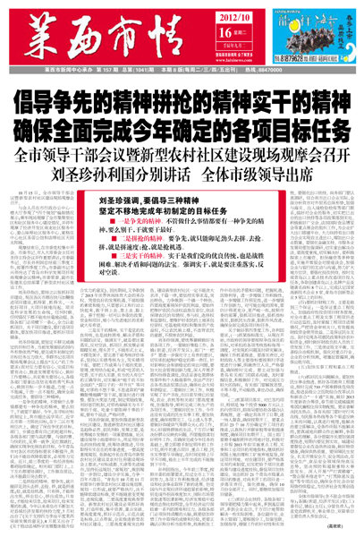 倡导争先的精神拼抢的精神实干的精神确保全面完成今年确定的各项目标任务全市领导干部会议暨新型农村社区建设现场观摩会召开刘圣珍孙利国分别讲话全体市级领导出席