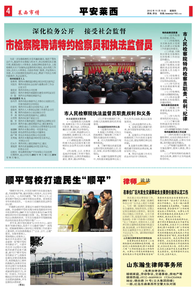 为进一步加强检察机关党风廉政建设,规范干警执法行为,11月13日,市人民检察院举行第一届特约检察...
