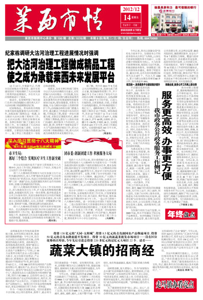 12月13日,市委副书记、代理市长纪家栋在市委常委、副市长张建东陪同下现场调研了大沽河治理工程莱...