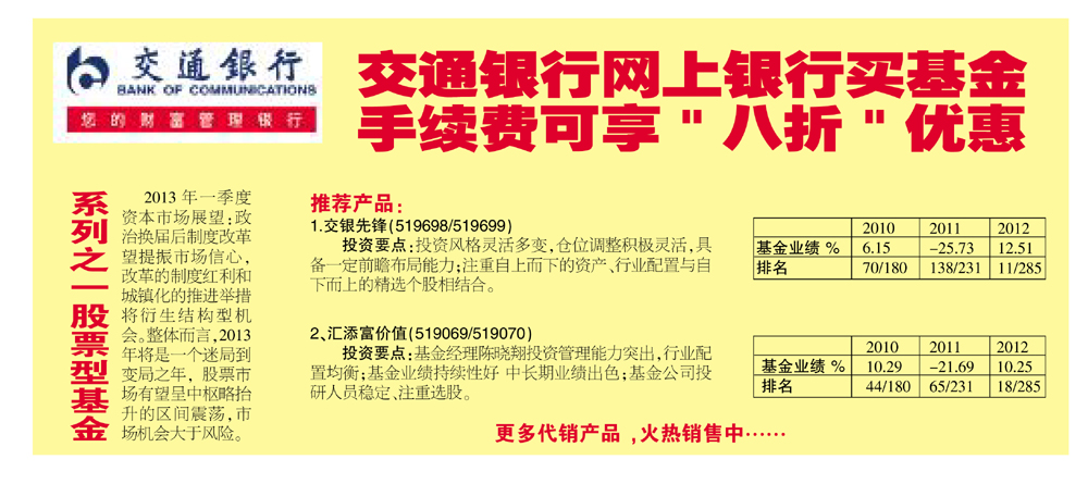 交通银行网上银行买基金手续费可享“八折”优惠