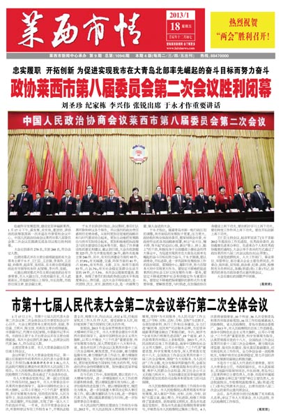 忠实履职 开拓创新 为促进实现我市在大青岛北部率先崛起的奋斗目标而努力奋斗政协莱西市第八届委员会第二次会议胜利闭幕 刘圣珍 纪家栋 李兴伟 张锐出席 于永才作重要讲话