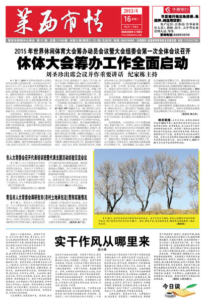 4月15日,2015年世界休闲体育大会筹办动员会议暨大会组委会第一次全体会议在市行政办公中心召开...