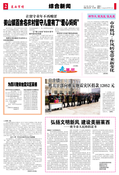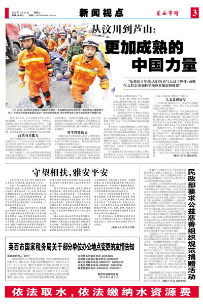 “公司落户到莱西后,得到市委、市政府的大力支持。得知雅安发生7.0级地震...
