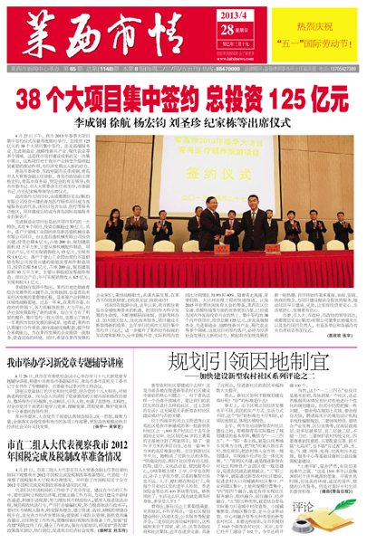 4月27日下午,我市2013年春季大项目集中签约仪式在豪邦度假村举行,总...