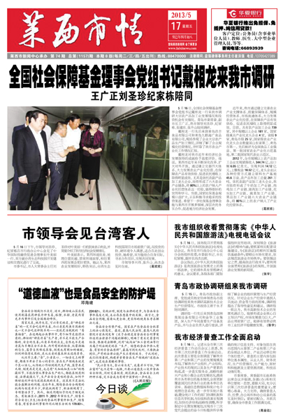 5月16日,全国社会保障基金理事会党组书记戴相龙一行来我市调研大宗农产品加工业发展情况和投资...
