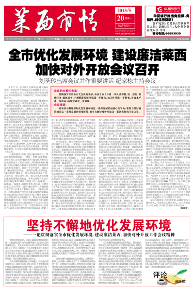 坚持不懈地优化发展环境———一论贯彻落实全市优化发展环境、建设廉洁莱西、加快对外开放工作会议精神