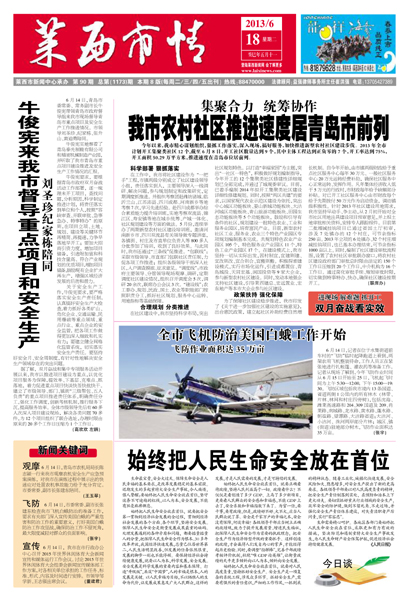 6月14日,青岛市委常委、常务副市长牛俊宪带领青岛市政府督导组来我市现场督导青岛市重点项目及安全...