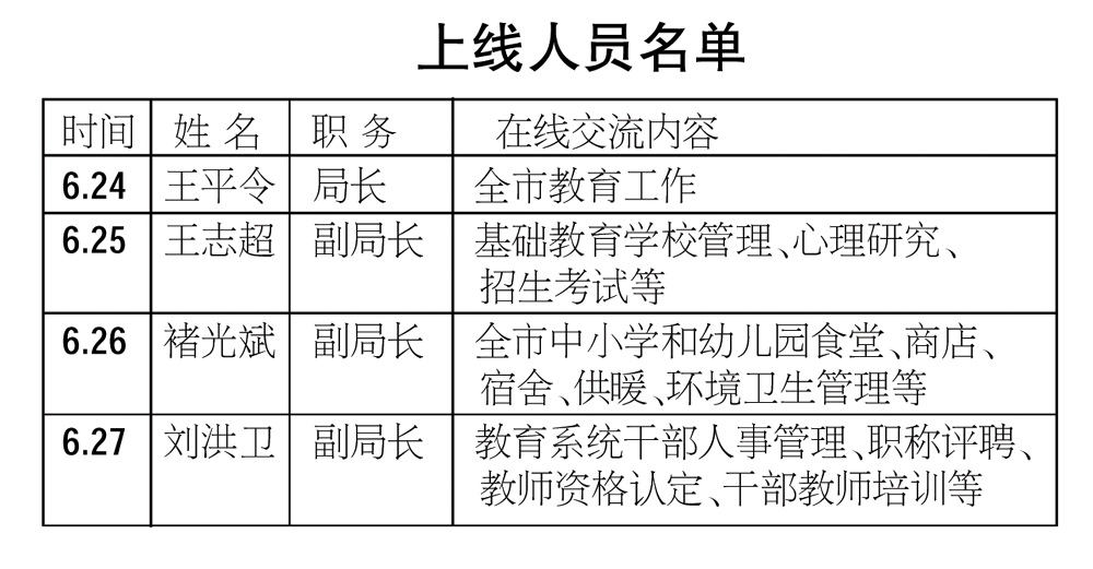 2013年6月24日—6月27日每天上午7:50—8:30,莱西市教体局部分领导做客莱西人民广播电台“政风行风在线”栏目,将围绕全市教育工作与听众进行在线交流,受理、答复群众投诉。