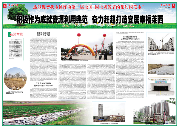 热烈祝贺我市被评为第二届全国“国土资源节约集约模范市” 新闻背...