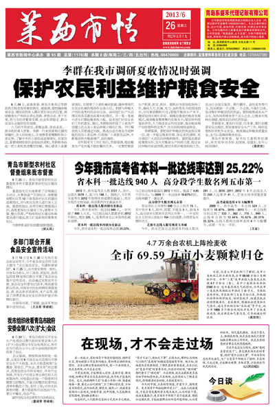 6月24日,省委常委、青岛市委书记李群到我市检查指导夏收情况。他强调,要...