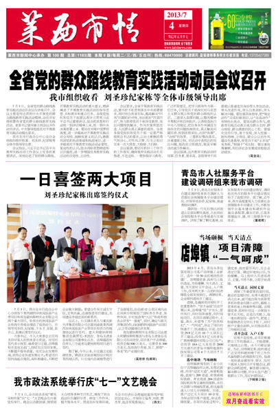 7月3日,我市在市行政办公中心分别签下莱西湖西岸休闲旅游产业带项目和青岛蒙纳斯特实业有限公司两个...