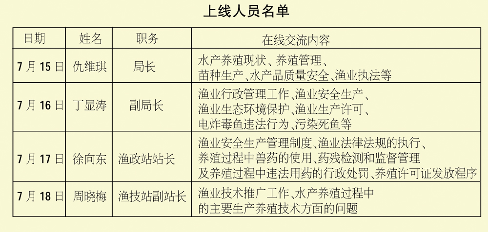 2013年7月15日—7月19日每天上午7:5 0—8:30,莱西市水产局部分领导做客莱西人民广播电台“政风行风在线”栏目,将围绕全市水产工作与听众进行在线交流,受理、答复群众投诉。