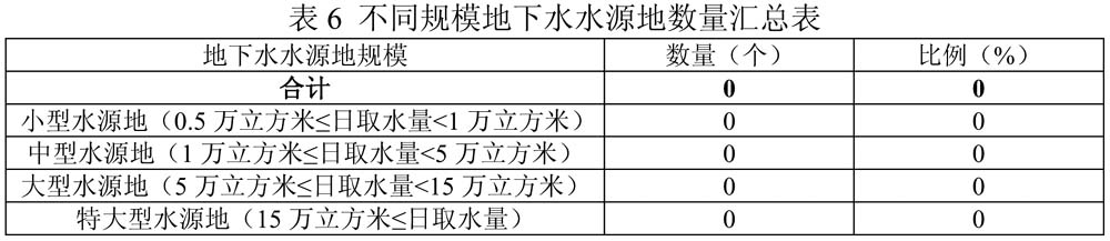 地下水水源地。共有地下水水源地0处(详见表6)。
