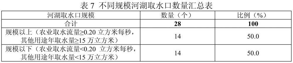 河湖取水口。共有河湖取水口28个(详见表7)。