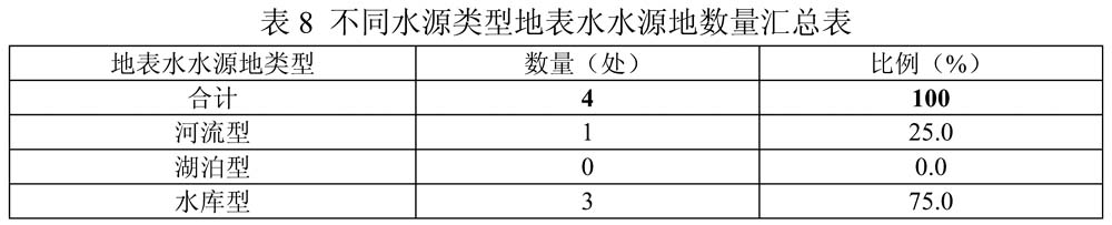 地表水水源地。共有地表水水源地4处(详见表8)。