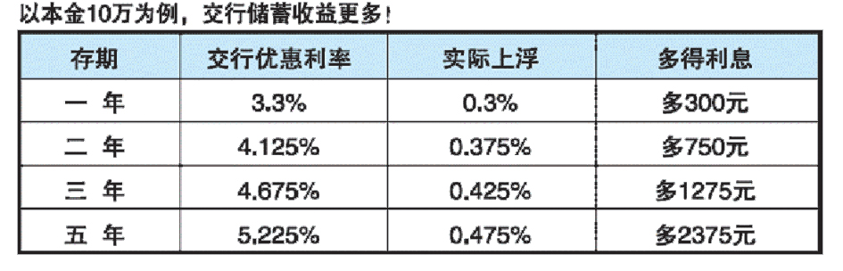 交通银行定期存款利率上浮至顶!