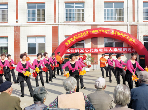 重阳节当日,水集街道办事处深圳路与杭州北路社区联合组织秧歌队,为水集街道办事处敬老院的老人们送去了精彩表演。