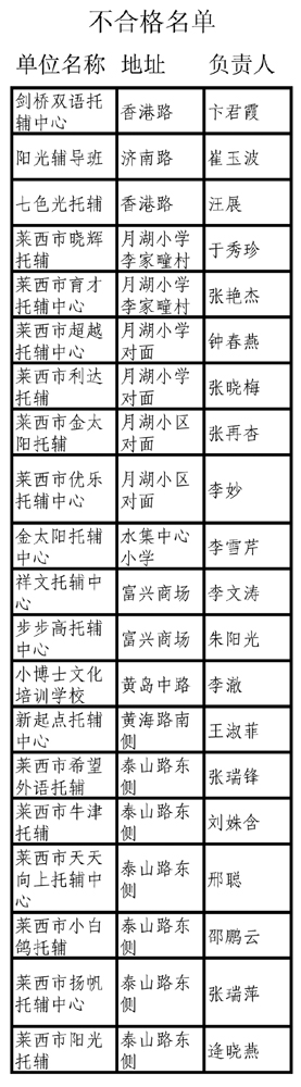 全市学生“小饭桌”检查结果公示