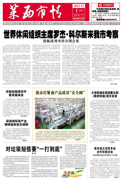 10月29日—31日,新任世界休闲组织主席罗杰·科尔斯率代表团来我市对...