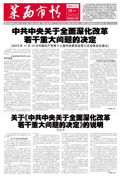 中共中央关于全面深化改革若干重大问题的决定(2013年11月12日中国共产党第十八届中央委员会第三次全体会议通过)