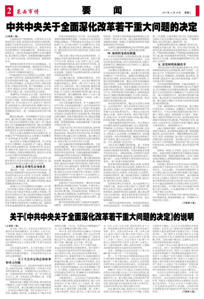 关于《中共中央关于全面深化改革若干重大问题的决定》的说明