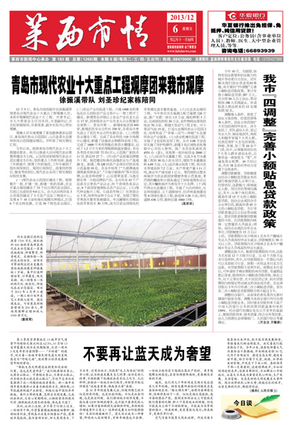 12月5日,青岛市政府副市长徐振溪带领青岛市现代农业十大重点工程观摩人员,来我市观摩现代农业十大...