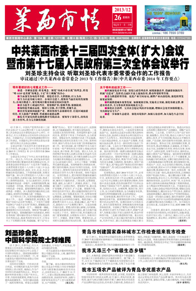 审议通过《中共莱西市委常委会2013年工作报告》和《中共莱西市委2014年工作要点》 明年要抓好...