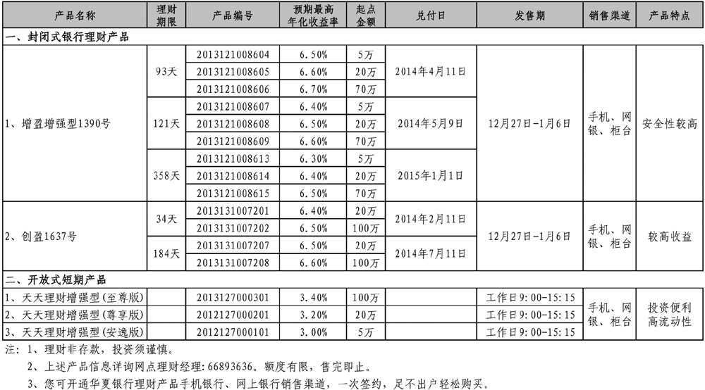 华夏银行提示您:利率不断下调,存款收益降低。为合理优化您个人的资产配置,可适当选择购买理财产品。华夏银行“龙盈”系列理财产品预期收益率全市同业最高,是您投资理财的最佳选择! 咨询电话: 66893636