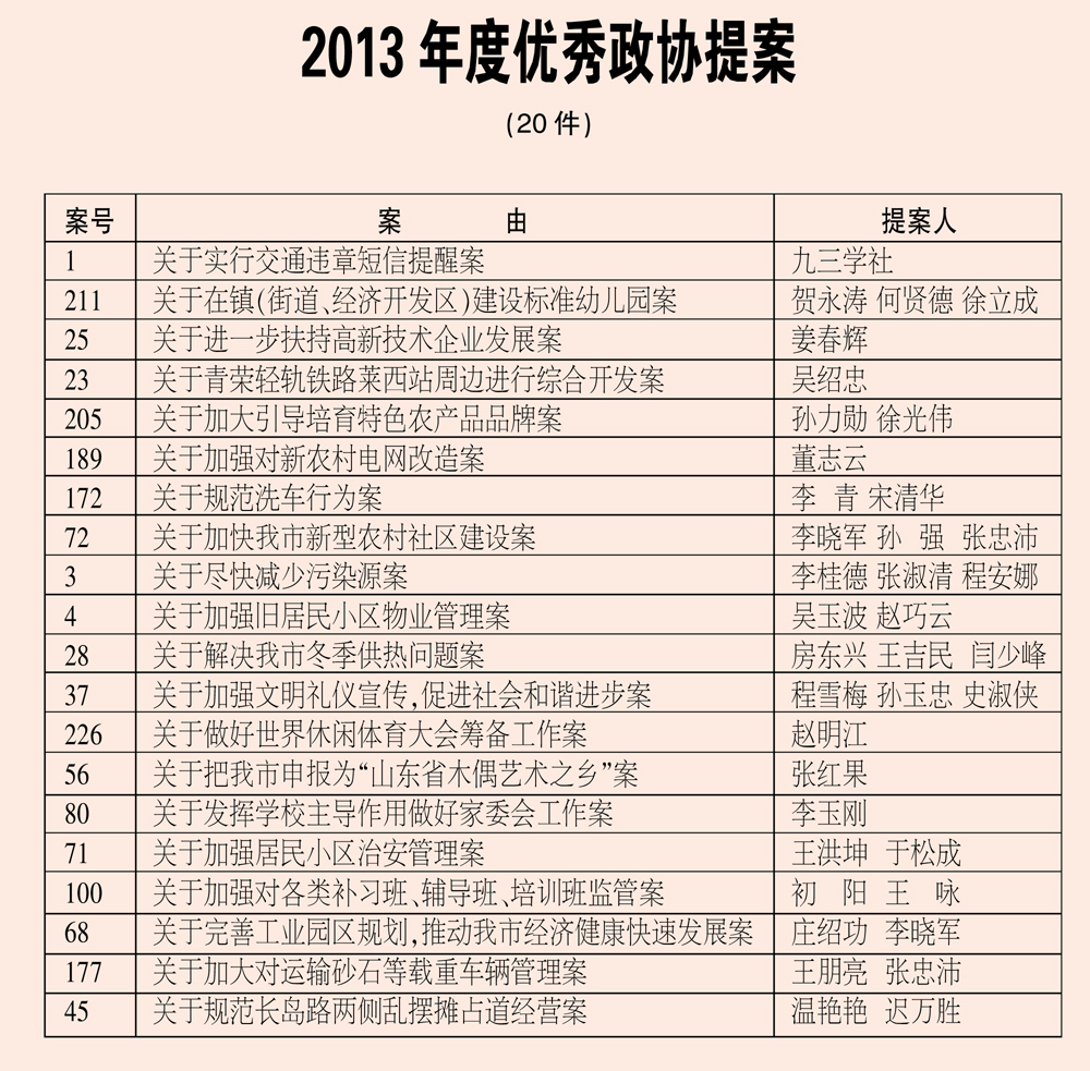 2013年度优秀政协提案(20件)