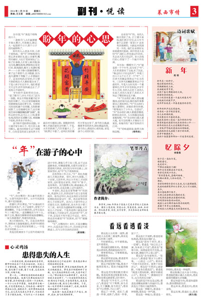 根据国家有关2014年春节休假的通知,本报1月30日起休刊...