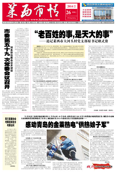 编者按:2013年11月12日,《莱西市情》用4个版的版面报道了姜山镇大河头村党支部书记耿式...