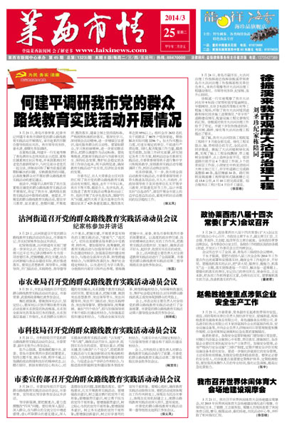3月21日,青岛市委常委、纪委书记何建平来我市调研党的群众路线教育实践活动开展情况。省市赴莱西市...