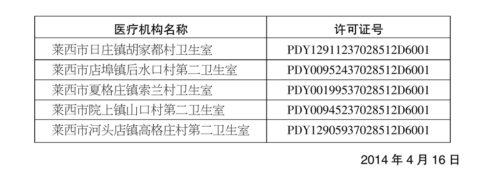 莱西市卫生局 关于注销5处医疗机构、《医疗机构执业许可证》的公告