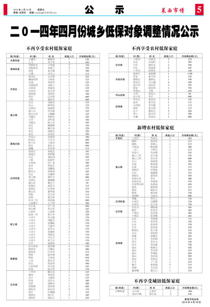 2014年四月份城乡低保对象调整情况公示