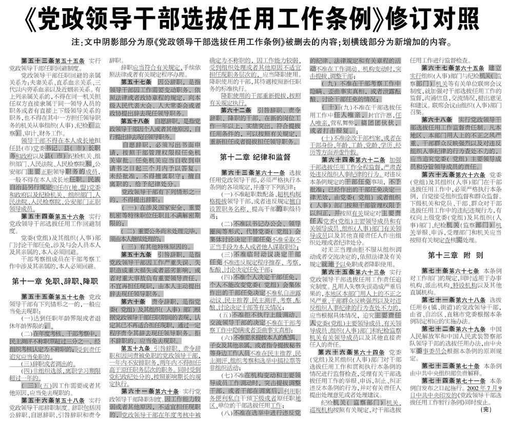 《党政领导干部选拔任用工作条例》修订对照