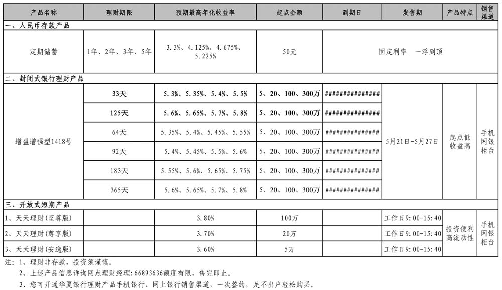 华夏银行提示您:利率不断下调,存款收益降低。为合理优化您个人的资产配置,可适当选择购买理财产品。华夏银行“龙盈”系列理财产品预期收益率全市同业最高,是您投资理财的最佳选择!