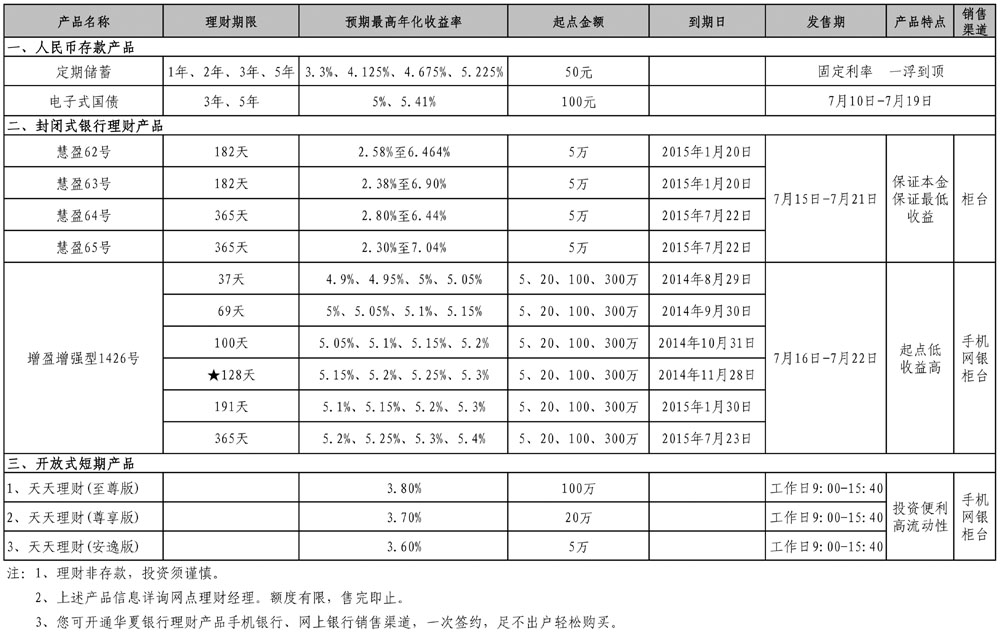 华夏银行提示您:利率不断下调,存款收益降低。为合理优化您个人的资产配置,可适当选择购买理财产品。华夏银行“龙盈”系列理财产品预期收益率全市同业最高,是您投资理财的最佳选择! 咨询电话: 66893636