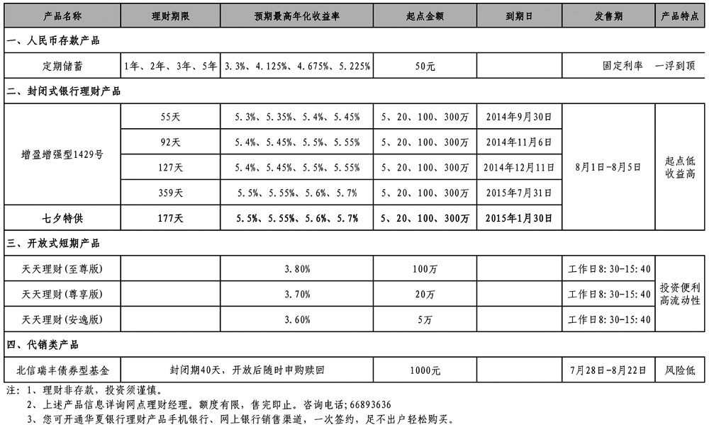 华夏银行提示您:利率不断下调,存款收益降低。为合理优化您个人的资产配置,可适当选择购买理财产品。华夏银行“龙盈”系列理财产品预期收益率全市同业最高,是您投资理财的最佳选择!