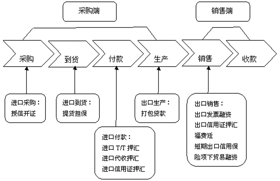 企业生产经营活动是一个持续的过程,包括采购、运输、存储、加工制造、配售与销售等环节。贸易融资就是紧跟这些环节提供融资。