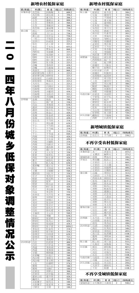 二0一四年八月份城乡低保对象调整情况公示