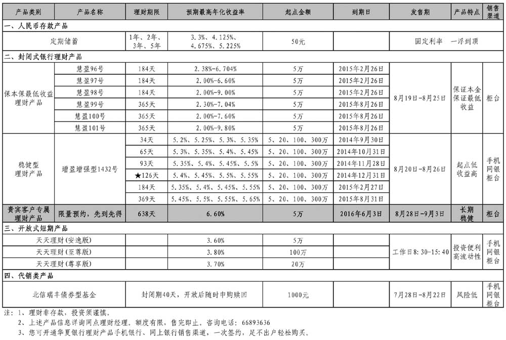 华夏银行提示您:利率不断下调,存款收益降低。为合理优化您个人的资产配置,可适当选择购买理财产品。华夏银行“龙盈”系列理财产品预期收益率全市同业最高,是您投资理财的最佳选择!
